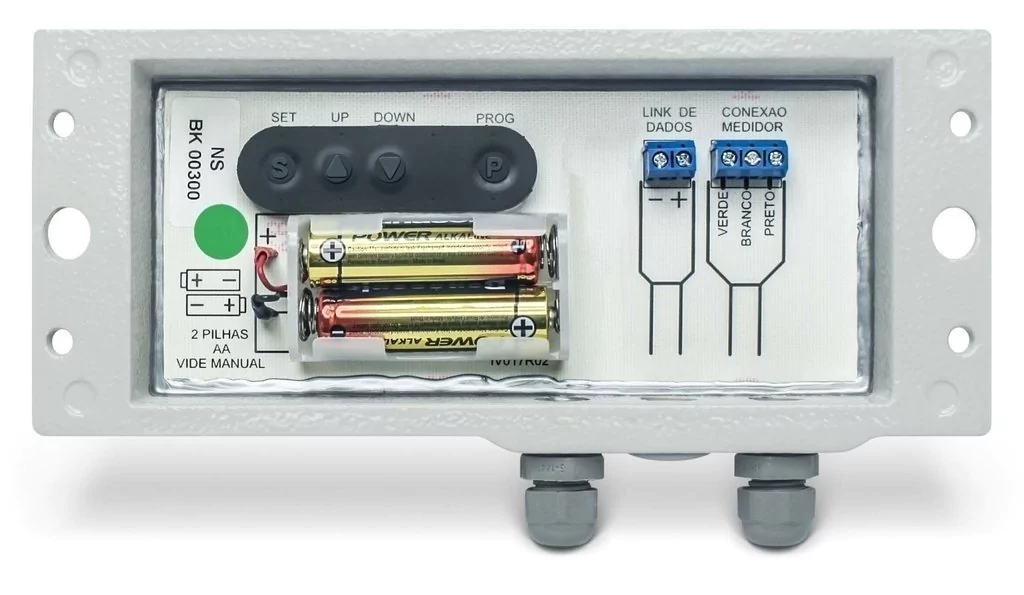O Mostrador do AR06 pode ser instalado ao lado do tanque ou em outro ambiente com distância máxima de até 100 metros de cabo.