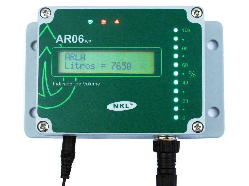 O indicador de volume digital AR06 Wi-Fi é um equipamento utilizado para medir a quantidade de litros de ARLA32 armazenada no tanque, substituindo a régua de medição manual ou a mangueira de nível.