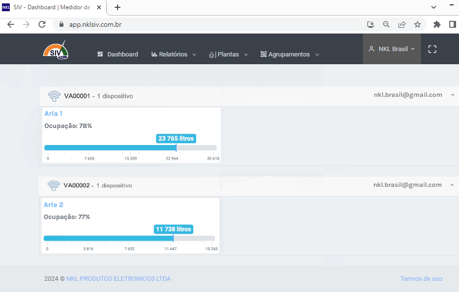 O AR06 Wi-Fi funciona conectado a uma rede Wi-Fi com acesso a internet, para que sejam disponibilizadas na web, através do site www.nklsiv.com.br as informações de volume em tempo real e também gráfico e relatório. O site pode ser acessado via computadores, smartphones, tablets ou outros dispositivos com navegador de internet.