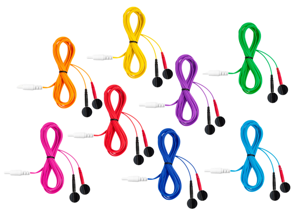 Conjunto composto por 8 cabos Pino 2mm com 8 cores, (Vermelho, Laranja, Amarelo, Rosa, Roxo, Azul claro, Azul escuro e Verde) + 16 Eletrodos 16mm