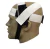 1 - Posicione a Faixa Elástica Maior transversalmente na cabeça conforme a figura 1, regulando o aperto do elástico conforme necessário. O marcador em costura vertical branca fica alinhado com o nariz, os dois fechos de velcro ficam logo à frente da orelha. O fechamento da faixa fica voltado para traz da cabeça;