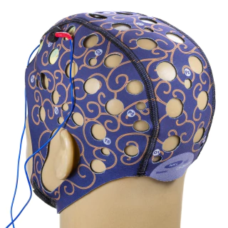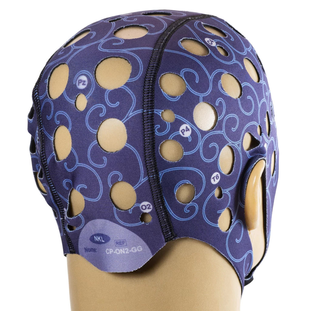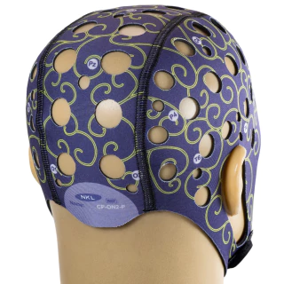 A touca modelo completo para TDCS NKL auxilia no posicionamento dos eletrodos na cabeça de acordo com o sistema 10-20 de EEG. A touca permite a colocação de forma rápida dos eletrodos NKL nos pontos destinados à receberem o estimulo elétrico além de garantir conforto ao paciente durante a sessão.